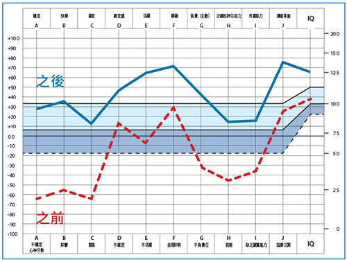 那些進行我們推薦課程的人,他們的人格分析圖表及智商分數獲得顯著提升。